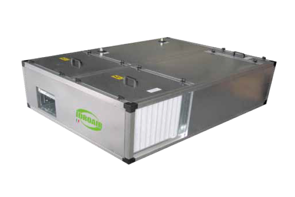 La série SR-E de l'unité de récupération de chaleur sont en effet équipé d'un récupérateur de chaleur à flux croisés d'aluminium à travers lequel l'air expulsé transfère une partie de sa chaleur à l'air frais avant qu'il ne soit introduit dans l'environnement. Dans tous les modèles, la boîte de confinement est réalisé avec une structure en aluminium et galvanisés panneaux sandwich en acier, isolation thermique en mousse de polyuréthane, sp. 23mm.