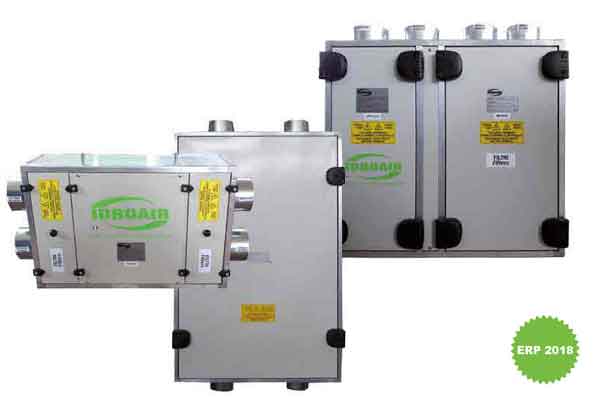 Le unità di recupero di calore serie SHB sono indicate per mantenere una qualità dell’aria ottimale nell’ambiente garantendo un’alta efficienza di recupero del calore contenuto nell’aria espulsa. Queste unità sono dotate di un recuperatore di calore controflusso ad alta efficienza in materiale plastico, attraverso il quale l’aria espulsa cede parte del proprio calore all’aria di rinnovo prima che sia immessa in ambiente, filtri sintetici sia nel flusso di presa aria esterna, sia in quello di espulsione, ventilatori con motori elettronici ad alta efficienza con portata regolabile da 0 a 100% e sistema integrato di free-cooling che permette l’immissione di aria dall’esterno senza scambio termico. In tutti i modelli il box di contenimento è realizzato con profili di alluminio e pannelli in lamiera preverniciata coibentati. Il sistema di regolazione a bordo macchina prevede un pannello di controllo remoto con display a cristalli liquidi per la regolazione dell’unità con comandi tipo touch . La portata d’aria dell’unità modello SHB va fino a 160 m3/h.